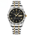 Upgrade your look with this elegant men's wristwatch, crafted for the modern gentleman. Featuring a luminous dial for visibility in low light, a reliable day and date display, and a water-resistant build—this watch combines luxury with everyday practicality. The stainless steel band with gold accents adds a sophisticated touch, making it perfect for business meetings or evening outings.